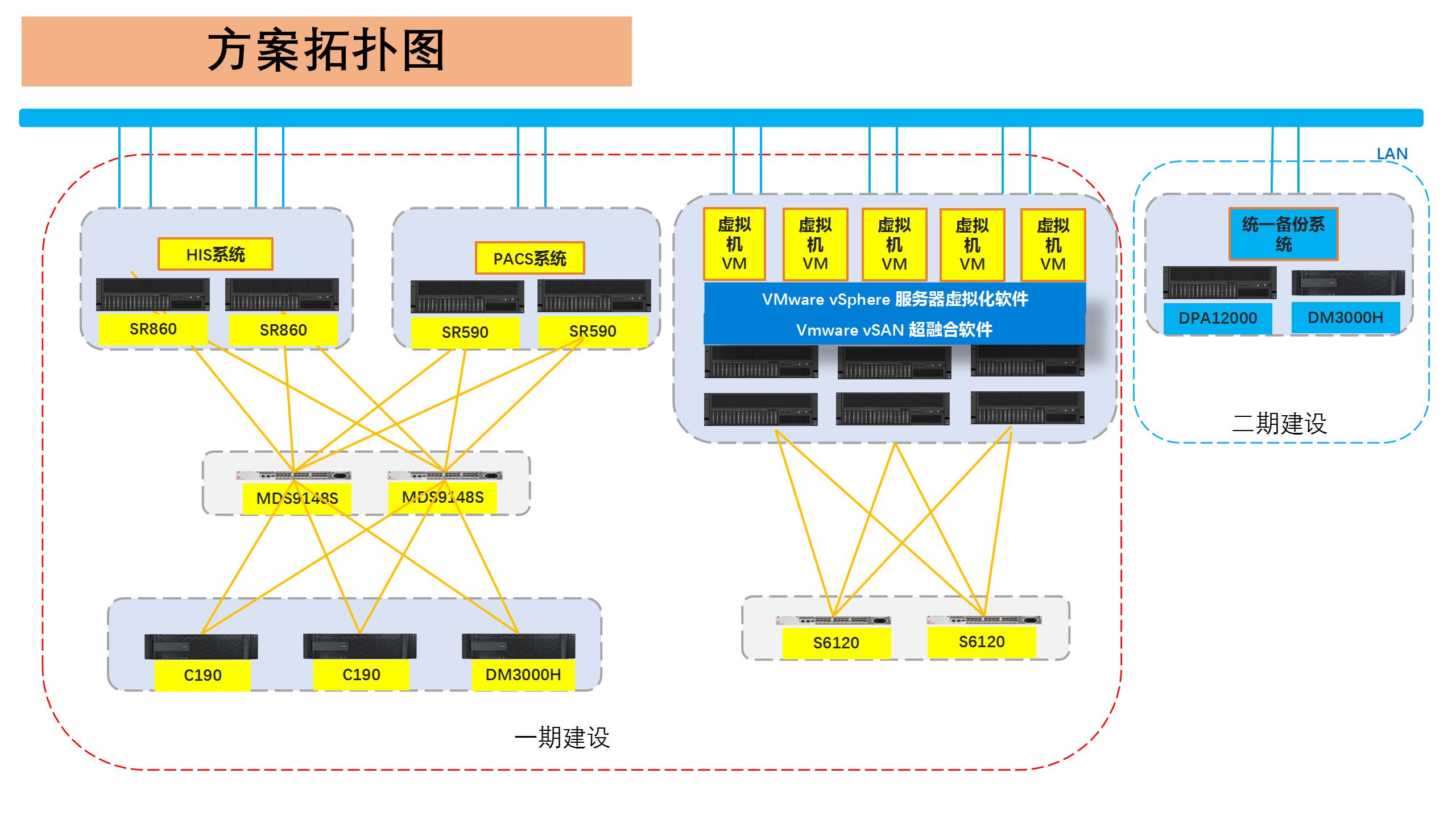 吳起縣人民醫(yī)院是一所集醫(yī)療、教學(xué)、科研、防保、急救為一體的綜合性二級甲等醫(yī)院,醫(yī)院承擔(dān)著該縣及周邊四縣近30萬人的診療保健任務(wù),是吳起縣最大的綜合性醫(yī)院。為深化醫(yī)藥衛(wèi)生體制改革,推進(jìn)醫(yī)共體建設(shè),提高醫(yī)院各項工作的效率和質(zhì)量,助力智慧型醫(yī)院落地,吳起縣人民醫(yī)院急需對原有業(yè)務(wù)系統(tǒng)進(jìn)行升級改造。 作為醫(yī)院信息化管理的基礎(chǔ)和骨架,HIS貫穿醫(yī)療流程、人員配置、患者就診信息、藥品銷售、庫存情況、營業(yè)狀況統(tǒng)計等全部模塊,是醫(yī)院統(tǒng)籌管理好“人-財-物“工作的基礎(chǔ),同時吳起縣人民醫(yī)院的設(shè)備上還運(yùn)行著 LIS實驗室信息管理系統(tǒng)、PACS醫(yī)學(xué)影像存檔與通訊系統(tǒng)、手麻、體檢等一系列臨床應(yīng)用,由于設(shè)備老舊,醫(yī)院面臨高峰時段無法滿足使用需求,存儲故障率較高,數(shù)據(jù)安全威脅等諸多問題。基于吳起縣人民醫(yī)院的實際需求,在預(yù)算非常有限的情況下,藍(lán)島科技攜手聯(lián)想提供了令用戶滿意的解決方案,方案以聯(lián)想ThinkSystem SR860作為HIS系統(tǒng)服務(wù)器,SR860采用英特爾至強(qiáng)可擴(kuò)展處理器,為HIS系統(tǒng)的運(yùn)行提供了卓越的速度和可靠性;部署2臺NetApp C190通過SnapMirror-Business Continuity方式實現(xiàn)存儲級雙活;部署1臺DM3000H主要運(yùn)行PACS數(shù)據(jù)庫,未來通過SnapMirror,組成高可用環(huán)境;以6*VX5520構(gòu)建基于vSAN的超融合虛擬化資源池,搭載起吳起縣人民醫(yī)院的其他業(yè)務(wù)系統(tǒng),實現(xiàn)統(tǒng)一管理,彈性調(diào)度,靈活分配。