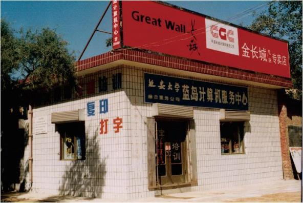 1994年8月,藍(lán)島計(jì)算機(jī)服務(wù)中心于延安市楊家?guī)X成立。主營計(jì)算機(jī)培訓(xùn),金長城電腦銷售。